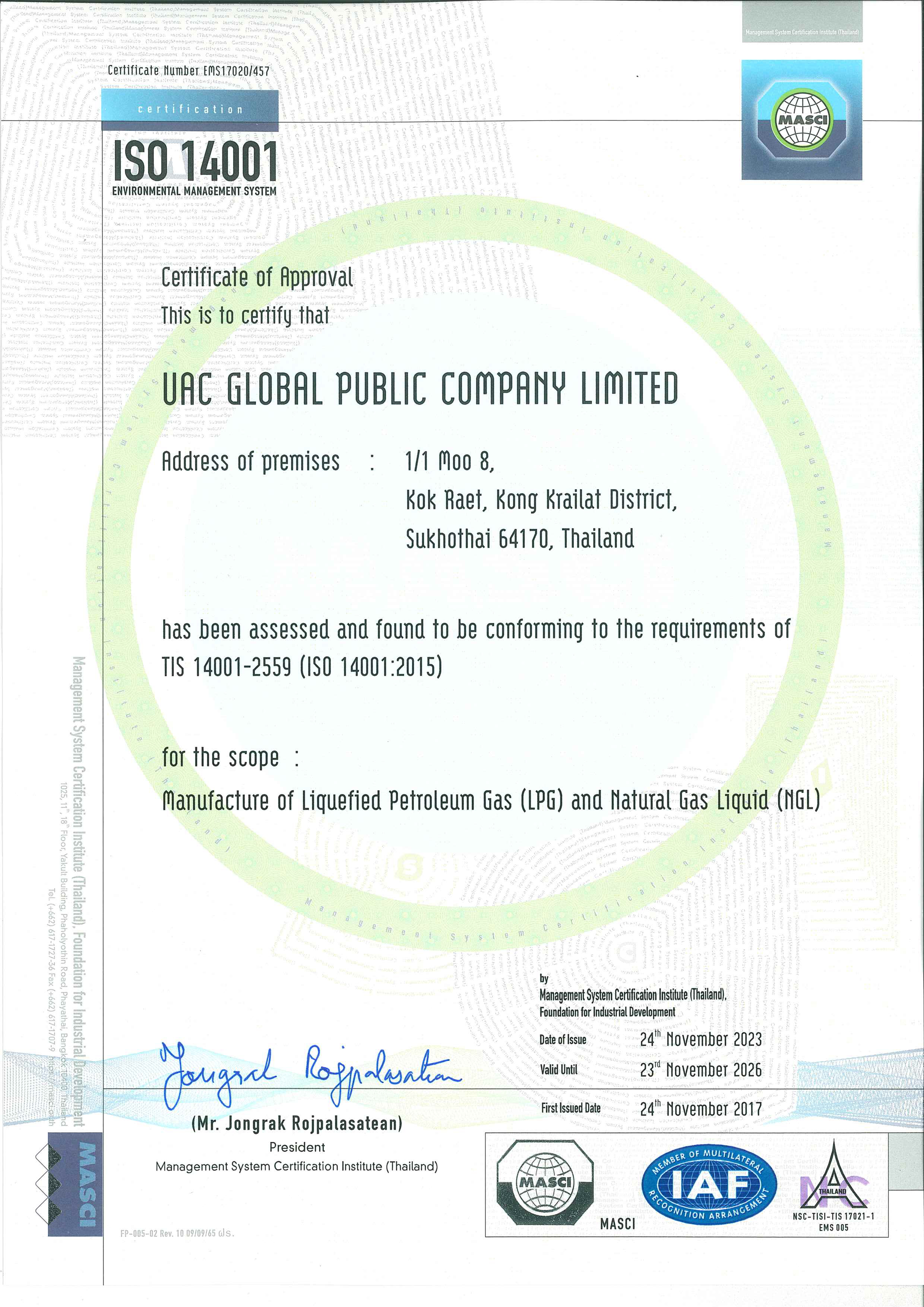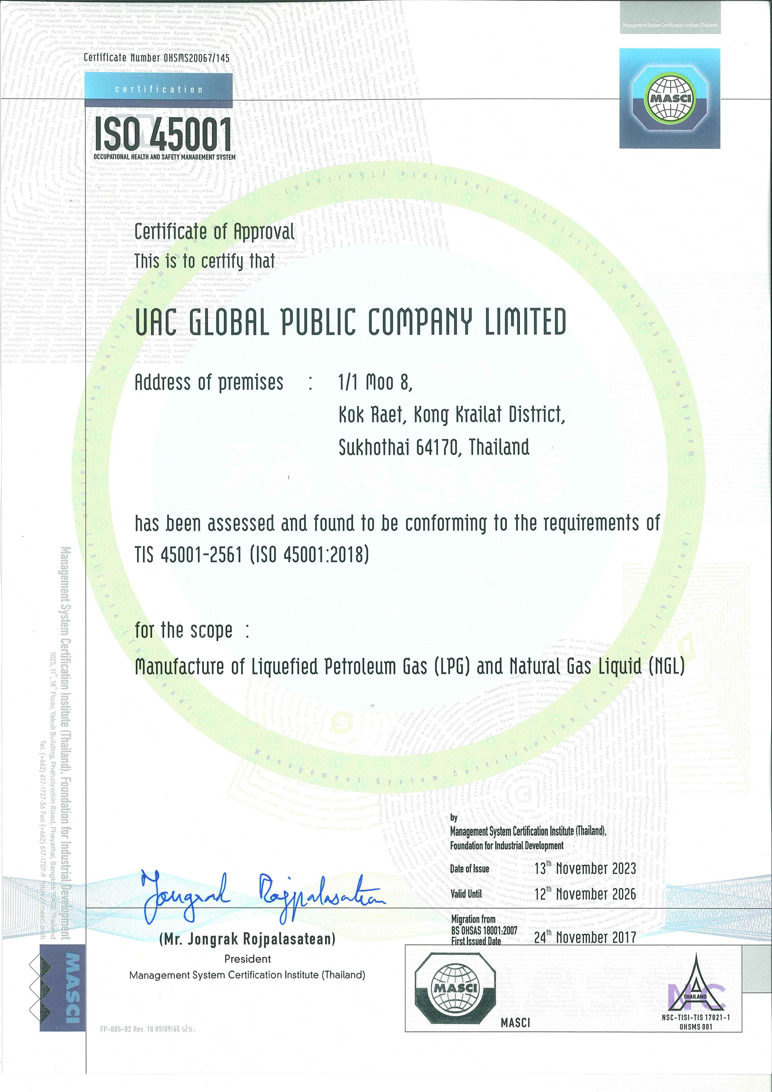 Issued by : Management System Certification Institute (Thailand) (MASCI)