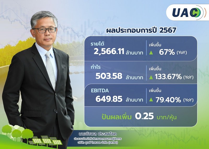 UAC กวาดรายได้ครึ่งปีแรก 68 แตะ 947.71 ลบ. กำไร 69.40 ลบ. พร้อมลุยขยายธุรกิจพลังงานสะอาด