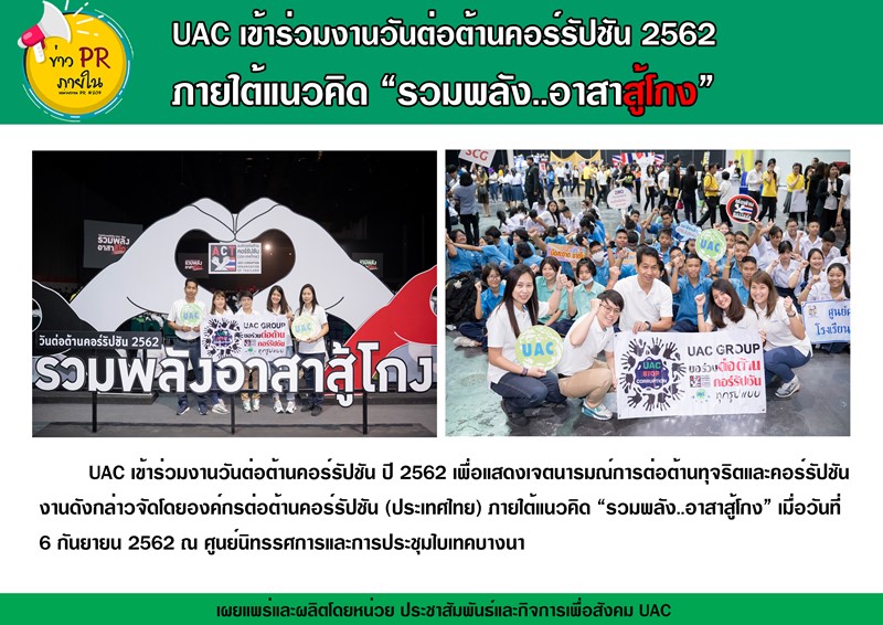 UAC เข้าร่วมงานวันต่อต้านคอร์รัปชัน 2562 ภายใต้แนวคิด "รวมพลัง..อาสาสู้โกง"