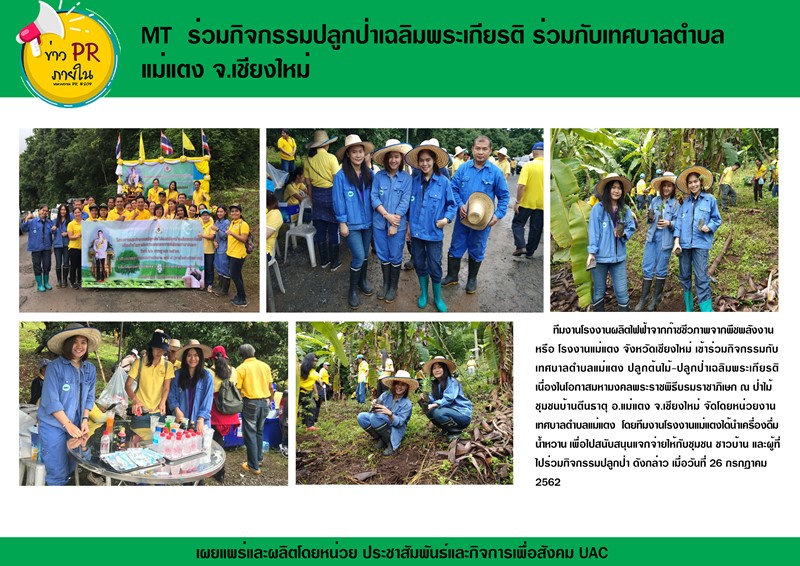 โรงงานแม่แตง จังหวัดเชียงใหม่ ร่วมกิจกรรมปลูกป่าเฉลิมพระเกียรติ ร่วมกับเทศบาลตำบลแม่แตง จ.เชียงใหม่