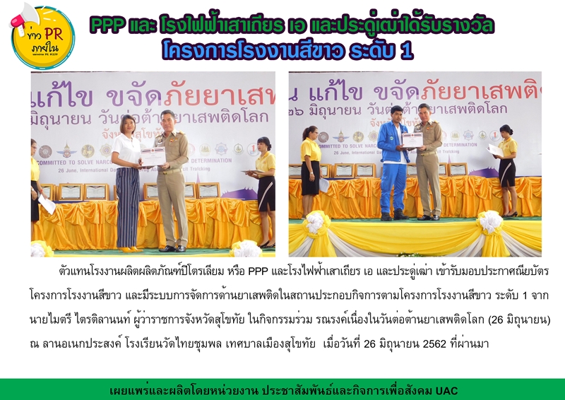 PPP และ โรงไฟฟ้าเสาเถียร เอ และประดู่เฒ่าได้รับรางวัล โครงการโรงงานสีขาว ระดับ 1