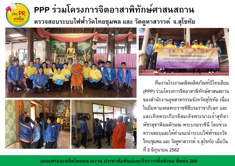 โรงงานผลิตผลิตภัณฑ์ปิโตรเลียม (PPP) จ.สุโขทัย ร่วมโครงการจิตอาสาพิทักษ์ศาสนสถาน