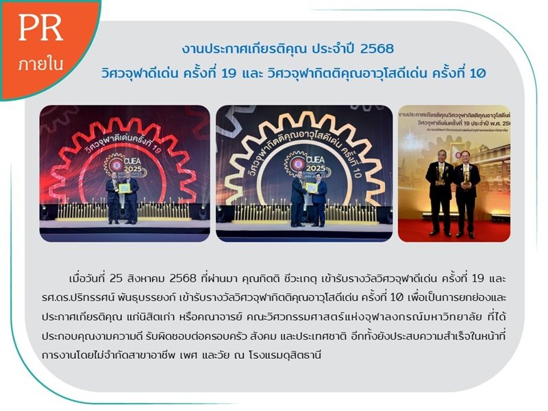 งานประกาศเกียรติคุณ ประจำปี 2568 วิศวจุฬาดีเด่น ครั้งที่ 19 และ วิศวจุฬากิตติคุณอาวุโสดีเด่น ครั้งที่ 10
